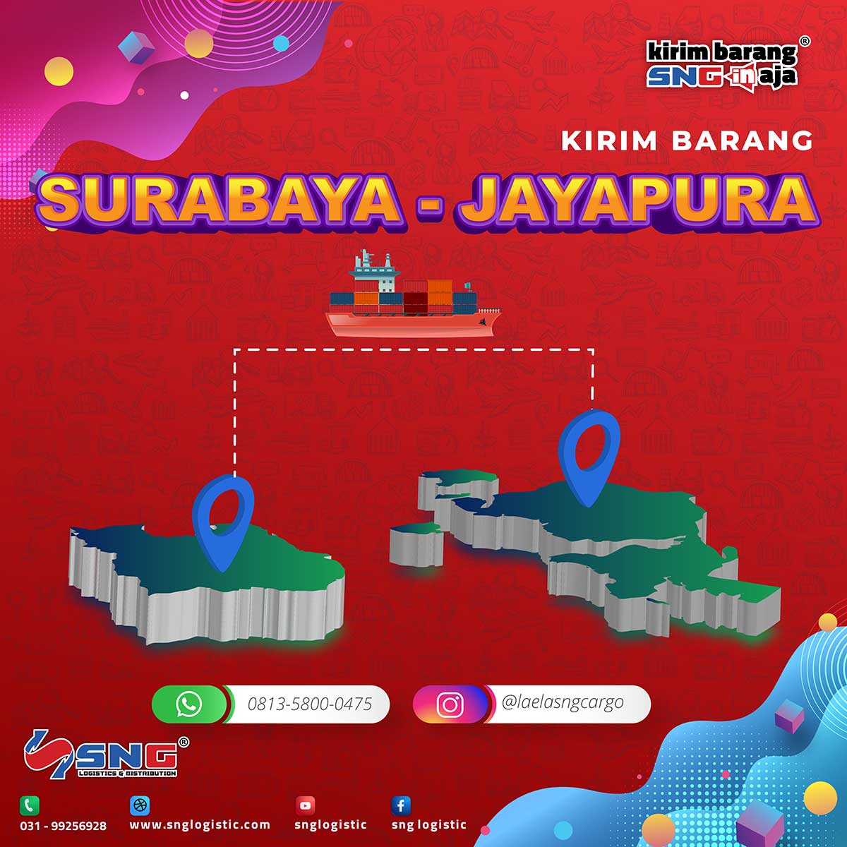 Kami dari SNG Logistics siap melayani jasa pengiriman ke Jayapura dengan tarif pengiriman yang kompetitif dan terpercaya. Kami menjangkau pengiriman meliputi beberapa kabupaten dan kota yaitu Agats, Biak, Tanah Merah, Demta, Wamena, Waris, Kepi, Merauke, Monokwari, Oksibil, Mulia, Sarmi, Sorendiweri, Karubaga, Botawa, Sumohai, Serui, Burmeso dan Jayapura.