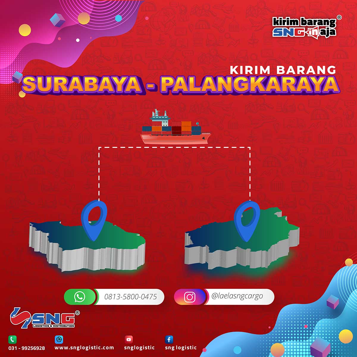 Jasa pengiriman barang ke Kalimantan yang murah memang banyak pilihannya. Namun, pengiriman yang murah dan berkualitas hanya jasa ekspedisi SNG Logistic ahlinya. Dengan pengalaman menangani ribuan proyek dalam pengiriman cargo, jasa ekspedisi SNG Logistic telah terbukti selalu mengedepankan kepuasan pelanggan. Bagi Anda yang butuh jasa pengiriman Surabaya-Palangkaraya yang murah dan terpercaya, layanan cargo murah SNG Logistic kini hadir untuk Anda. Kami juga memiliki jaringan hub / port yang tersebar di 34 Provinsi serta support fasilitas dan tim yang mumpuni saat ini mampu mendistribusikan barang ke 547 kota di Indonesia.