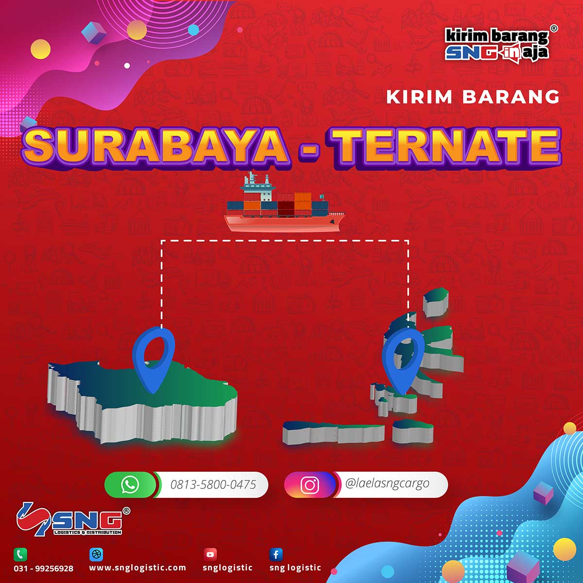 SNG Logistics siap melayani jasa pengiriman ke Ternate dengan tarif pengiriman yang kompetitif dan terpercaya. Kami menjangkau pengiriman meliputi beberapa kabupaten dan kota yaitu Jailolo, Labuha, Weda, Maba, Tobelo, Sanana, Ternate, Tidore.